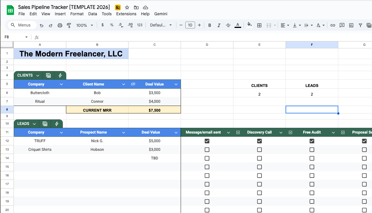- Download my free Sales Pipeline Tracker (the exact one I use): https://themodernfreelancer.gumroad.com/l/sales-tracker